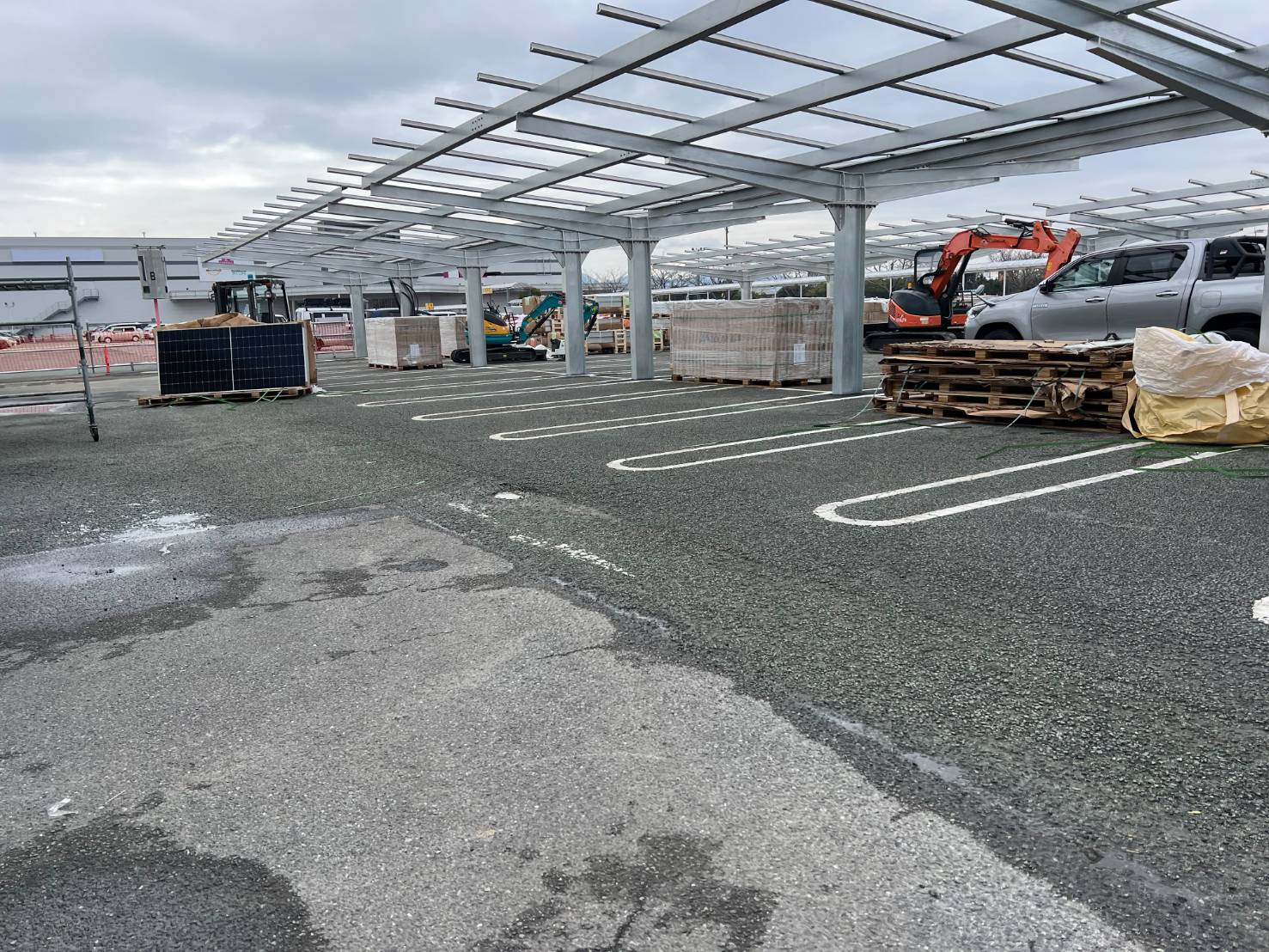 カーポート設置後には、再生可能エネルギー源としてソーラーパネルの設置を行ないます。